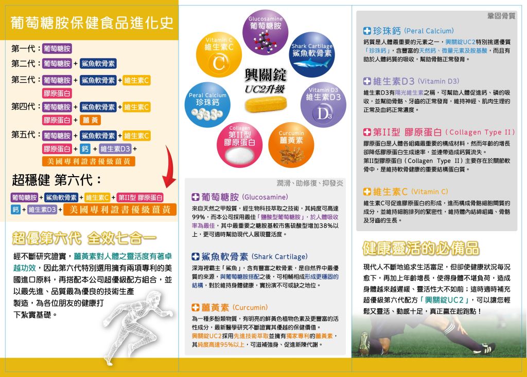 成分:葡萄糖胺鹽酸鹽、乳糖、聚乙烯吡咯烷銅、薑黃、鯊魚軟骨粉、雞胸軟骨萃取粉、L-抗壞血酸(維生素C)、珍珠粉、葡萄糖酸鋅、硬脂酸鎂、二氧化矽、維生素D3