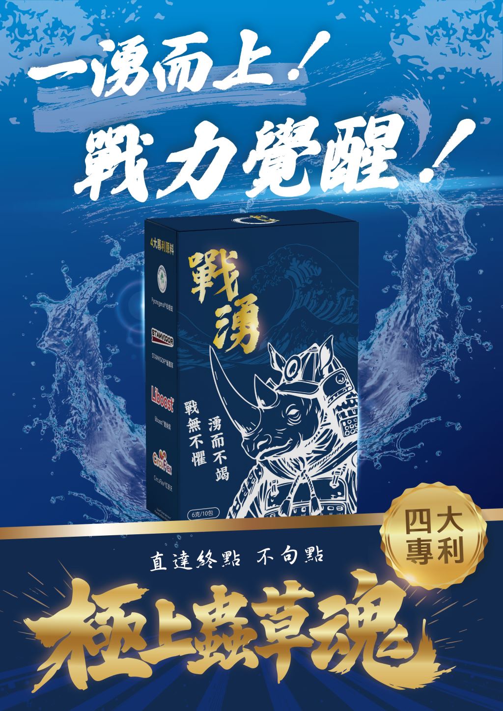 戰湧結合多種植物萃取與專利成分,嚴選精胺酸、蛹蟲草子實體、紅景天、人參、刺五加與松樹皮萃取物,並搭配專利透納葉與鋅等營養元素,打造融合漢方草本與現代機能概念的複合配方。多元成分協同設計,作為日常循環與活力補給的營養選擇。